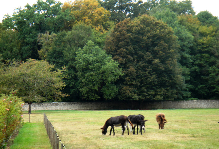 От Билетной кассы к замку ведет липовая аллея. К западу от нее расположены небольшой лабиринт и статуи кариатид. К востоку – ослиная ферма, огород, реконструированная ферма XVI века. Аллея заканчивается небольшим парком, в восточной стороне которого ресторан, кафе самообслуживания, музей восковых фигур и второй на территории поместья туалет.