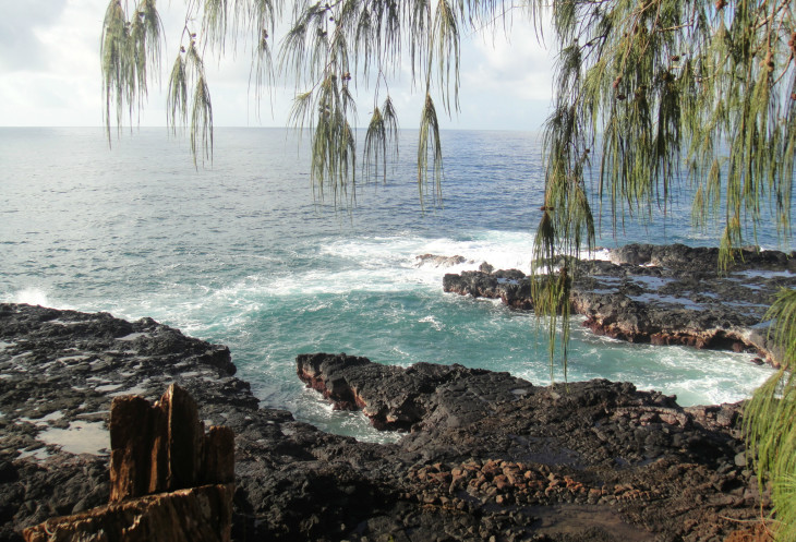 Самое грандиозное впечатление получаешь от северного побережья Кауа’и, которое лучше рассматривать с вертолета или с воды. Na Pali Coast – это древние складчатые скалы высотой более 1200 метров. С этой высоты они всей своей мощью как будто стекают в океан. Очень легко представить, что в лесах на утесах Na Pali и живут велоцерапторы, тиранозавры и птеродактили. Мне повезло увидеть более современных животных: несколько семей горбатых китов с детенышами. В январе-феврале они часто приплывают к островам Кауа’и и Мауи и резвятся сравнительно близко от берега.
