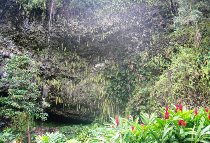 Папоротниковый грот (Fern Grotto) – романтическое место на реке Wailua, где, как в нью-йоркском отеле Plaza, идет борьба за место в очереди сыграть здесь свадьбу.