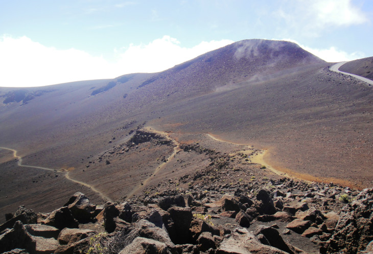 Склоны потухшего вулкана высотой 3 055 метров видны отовсюду, в центре и на востоке острова. Петляющая автодорога длиной чуть больше 60 километров ведет на вершину горы и проходит через 5 климатических зон. Сверху можно увидеть западную часть Мауи, и даже Большой остров (Big Island).