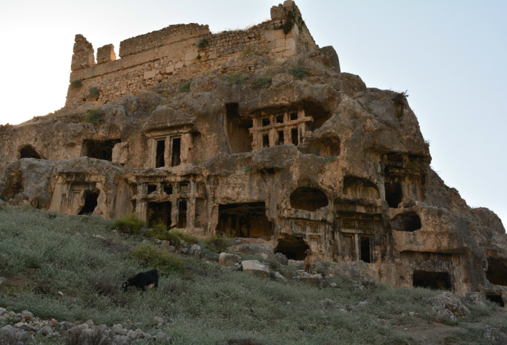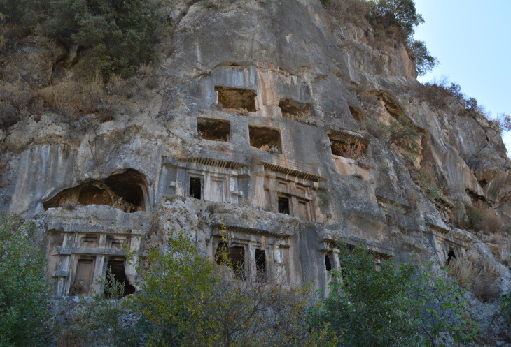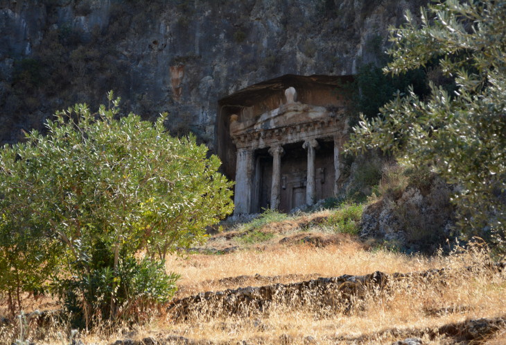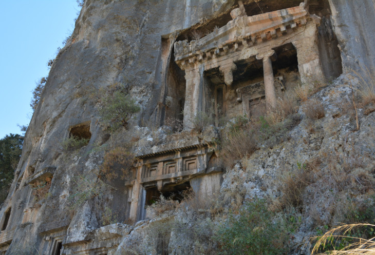 Только сначала смотрим на гробницы в скалах. Это наша первая встреча с древней Ликией. Впечатляет.
