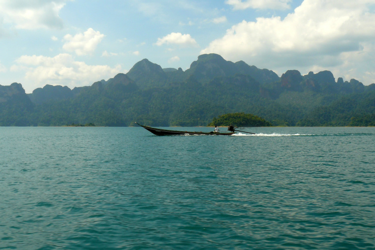 Нашими соседями была компания тайцев (у местных отдых на озере очень популярен) и группа русских туристов с Пхукета, девушка-гид которых была очень удивлена появлению русских «дикарей». И радушно пригласила присоединиться к группе на вечерней и утренней поездке по озеру. Наша аренда лодки кроме доставки к рафтхаусу также включала в себе 2 катания. Мы естественно воспользовались всеми предложениями :)