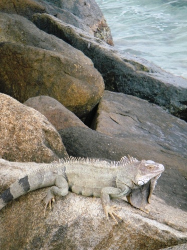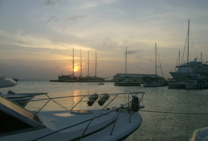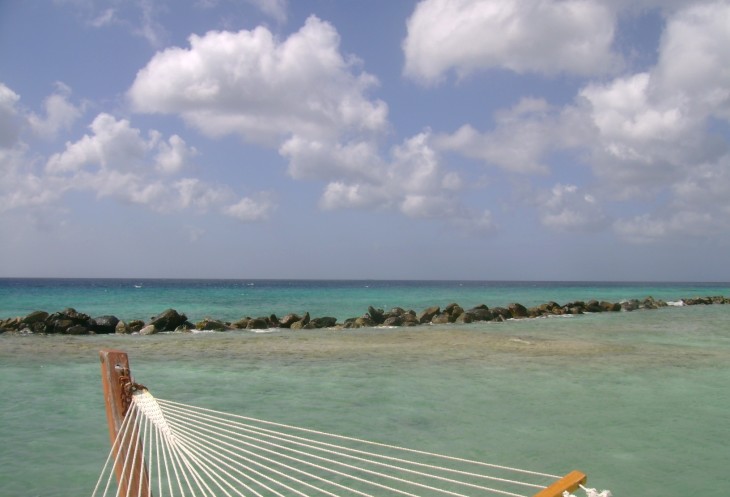 Поднимаемся по внешней лестнице «Игуаны Джо» на верхнюю веранду и занимаем места на разноцветных табуретках поближе к перилам балкона. Пока официанты разбираются с заказами, разглядываем народ, шуршащий внизу, и главную фишку «Игуаны» - обрамленный верхушками коксовых пальм вид на бухту Ораньестада и все оттенки искрящегося Карибского моря. Где-то там, за горизонтом, скрывается Венесуэла.