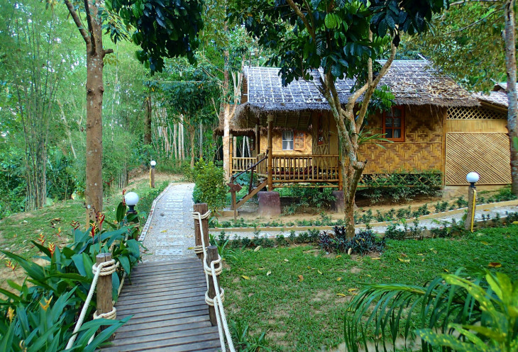 Все, наконец программа 1-го дня себя исчерпала и нас привезли на реку Сок в бамбуковый отель на ночевку.