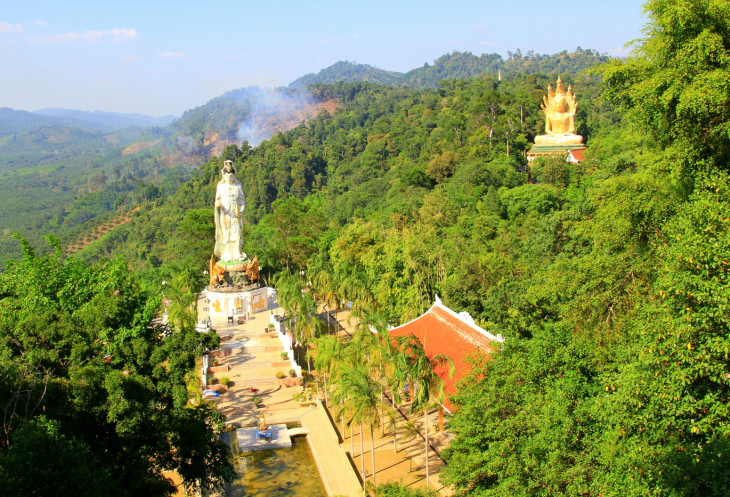 Он расположен на вершине горы, у подножия которой находится сидящая статуя китайской богини Гуань Инь. Со смотровой площадки храма открывается великолепный вид на долину с пальмовыми рощами и статуями Гуань Инь и Будды.
