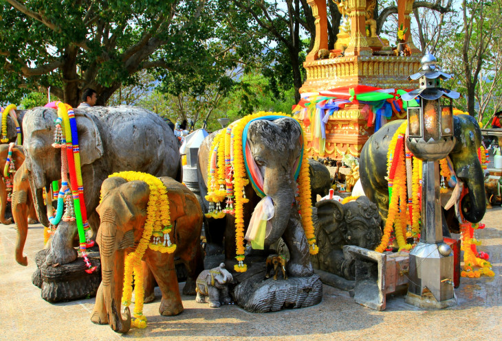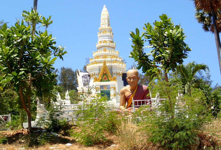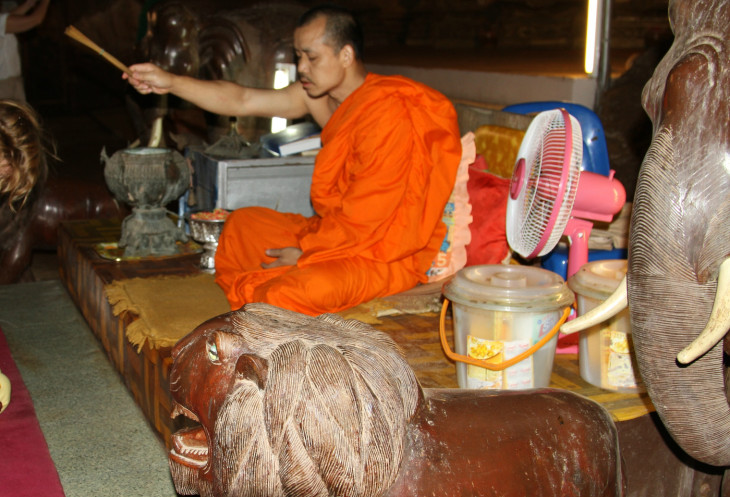 Обезьян, избравших гору, в которой расположен храм, за место проживания поначалу не было, и расстроенные туристы бросились в очередь к буддийскому монаху за защитой от злых духов. Сбрызнув голову очередного туриста водой и повязав на запястье цветной шнурок, монах не забывал взглядом показать на ящичек для пожертвований…