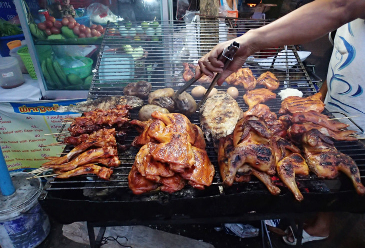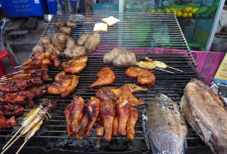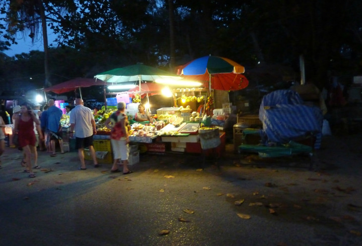 Время неспешного обеда. И вот тут я удивил даже самого себя! Я конкретно подсел на еду с мокашниц! Не тайскую – до этого я так и не дошел – а обычную простонародную, почти русскую! Печеная картошка с огонька (вот не ожидал) просто супер! Рыба, обваленная в соли, запеченная! Плюс свежие овощи и фрукты! Несмотря на курортное место, обед на балконе номера обходился в 150-200 рублей! Для полировки маленького кулинарного счастья можно еще добавить рюмку рома Sam Song и пару кокосов для запивания! Причем на кокосовую воду подсел весьма крепко! В день уходило не менее десятка кокосов по смешной цене 20-40 бат (вернувшись в Мурманск, купил пару кокосов за 400 рублей, выкинул)…