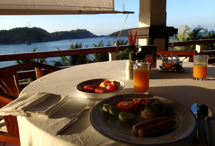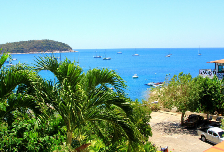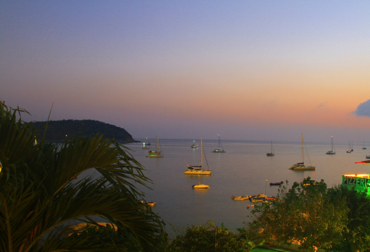 Вид из отеля (если не смотреть в сторону пляжа в час пик – то есть с 9 утра и до темноты) великолепный. Десятка два яхт (каждая вторая с нашим контингентом!) живописно разбросаны по заливу. Закаты потрясающие!