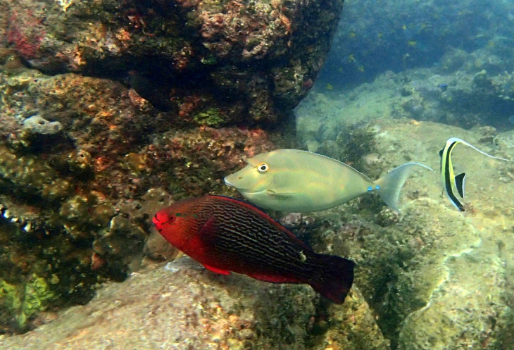 Немного веселее нырять, отъехав на каноэ (бесплатно можно брать в отеле) километра на 1.5 на маленький пляжик, дорога к которому и проходит через территорию отеля. Там рыбный мир побогаче, хотя тоже без особых изысков…