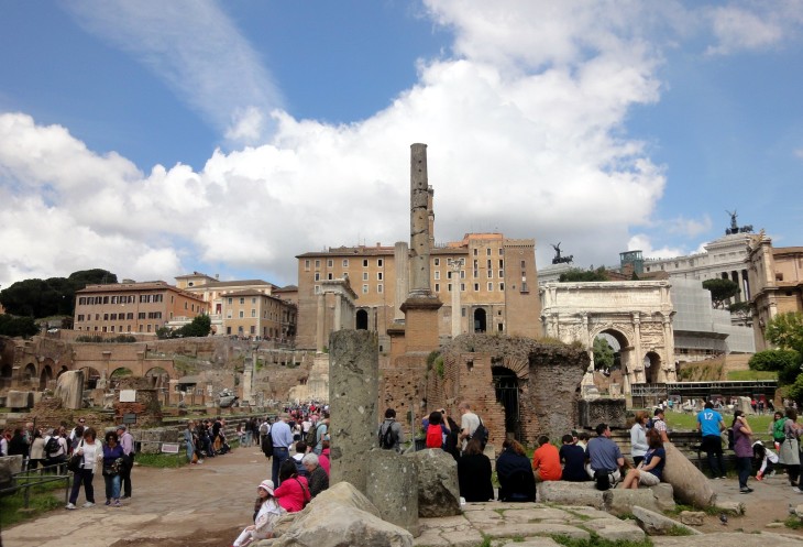 Римский форум это, по сути, остатки сооружений древнего Рима, когда-то там был центр города. Тут я бы посоветовала взять в руки путеводитель или заранее распечатанные странички Википедии, потому как ходить от одной развалины к другой занятие не самое интересное. А вот когда ты понимаешь, что это Храм Диоскуров, а это Храм Сатурна, тут храм Весты…