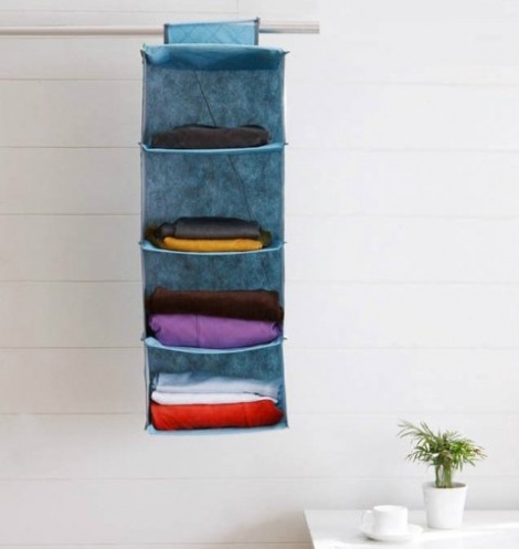 Удобный способ хранить вещи в чемодане, а после использовать его в отеле – мягкая тканевая многоуровневая полочка. Распределяем вещи на уровнях полочки, складываем ее и упаковываем в чемодан. В отеле раскладываем и ставим в шкаф или подвешиваем – и получаем дополнительное место для вещей. Тканевые полки продаются в магазинах быта.