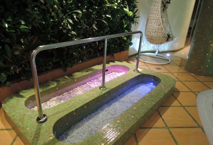 Всё построено на чередовании водных и банных процедур. Джакузи, бассейн с противотечением, янтарная баня, хаммам, ледяной фонтан, душ впечатлений, сауна, контрастные водные дорожки и, на закуску, фитобар. К водно-паровым аттракционам добавляют спа-ритуалы для лица или тела.