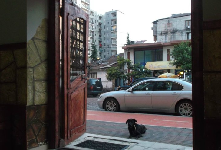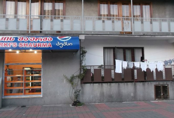 Кстати - хинкальная прямо напротив нашего хостела. Эталонная кухня и неравнодушные зрители.