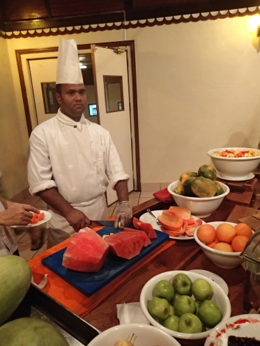 Завтрак весьма скромен, но достаточен: каша, мюсли, картошка, фасоль, грибы, сосиски или бекон, омлет с добавками (готовят при тебе), тосты, оладьи, выпечка, фрукты (бананы, ананасы, папайя, гуава, яблоки, апельсины), сок, молоко. Не голодали! Но, выпечка была вечерней, а в прошлом году – еще теплой! И прошлогодние фрэши канули в лету…