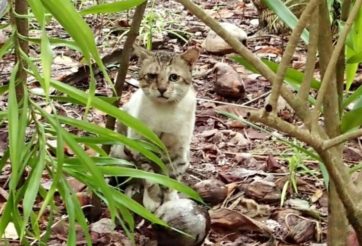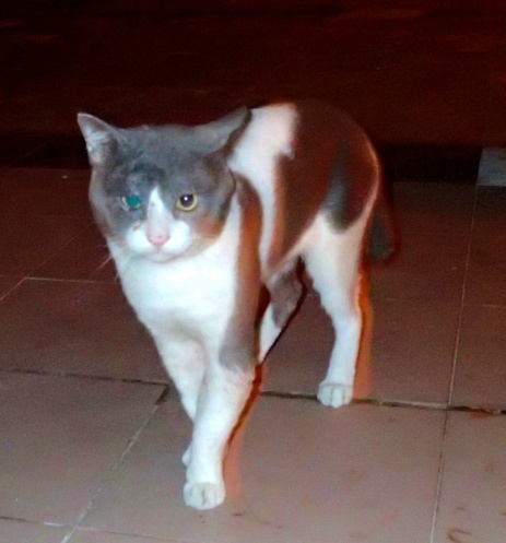 Заключительная кормежка диких котов в темноте, сопряженная с риском для жизни (пальмы разбросаны в совершенном беспорядке! а освещение хромает)…