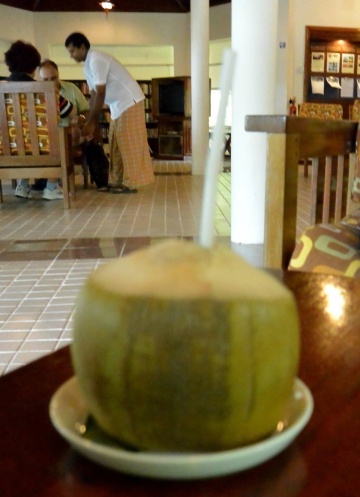 Первым делом прибывшим подают холодное полотенце и кокос.