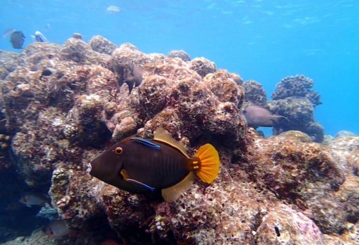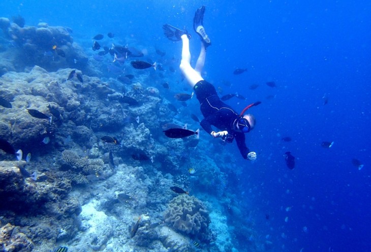 Ничего не оставалось делать, как одеть ласты и маску, чтобы проведать старых знакомых – мальдивскую рыбную шантрапу и опробовать фотик уже под водой.