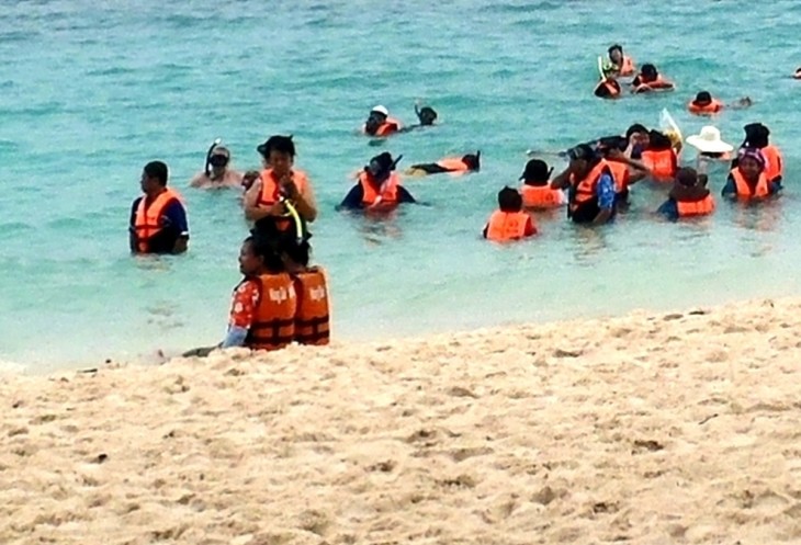 А после еды, выстроившись в шеренгу по два, одев оранжевые спасательные жилеты и обвесившись фотодевайсами, колонна японцев маршировала на пляж, где заходила на глубину (в общем вам по пояс) и плавала строем вдоль берега!