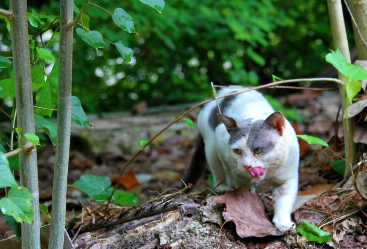 Да, коты – отдельная тема! В прошлом году прайд насчитывал не один десяток особей. Даже одного пришлось взять на поруки и откармливать сосисками и прочей мясной канителью. А тут первые полчаса не попалось ни одного! Хотя всем известно - без котов какие же ж джунгли? Но, постепенно глаз выхватывал то там, то сям движение веток и светящиеся глаза. Коты есть, все в порядке!
