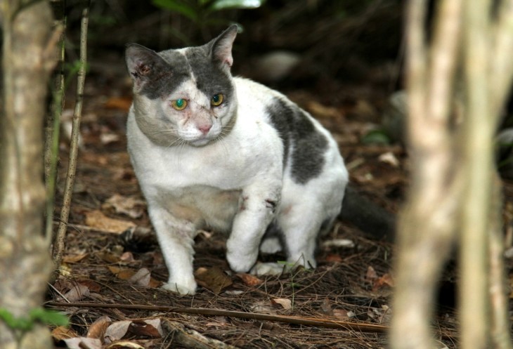 Прошлогодний серый кот заматерел. Приобрел кучу старых шрамов в битвах за сердца островных красавиц, но в драке за белую бесхвостую кошку был изрядно подран и изгнан причальным котом зализывать раны…