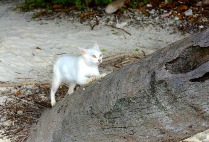 Теперь о котах. Если Тайланд - собачий рай, то Мальдивы, безусловно, рай кошачий! Собаки на азиатский взгляд - или красивые, или вкусные! Но это не про Мальдивы! Здесь собаки – животные грязные и недопустимые в обычной жизни! Даже есть нельзя! Ввоз собак на острова категорически запрещен – вера не позволяет! И вот для котов наступает истинная благодать! Тепло. Еды в виде ящериц, мышей и пальмовых крыс хватает. Кроме того, время от времени встречаются доверчивые туристы, попадающие в капкан жалостливых глаз и вкрадчивого мяуканья. Ведь мыши - мышами, но сосиски, в отличии от них, как правило, не имеют привычки убегать и прятаться…