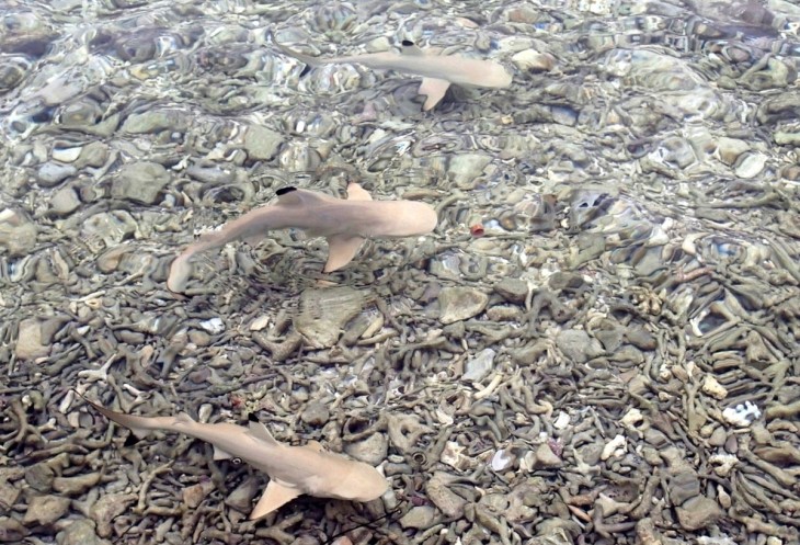 Послеобеденное рассматривание мальков (до метра) мальгшаских ночных акул, снующих вдоль берега средь бела дня (чтоб не сожрали старшие товарищи) и их кормление все теми же сосисками…