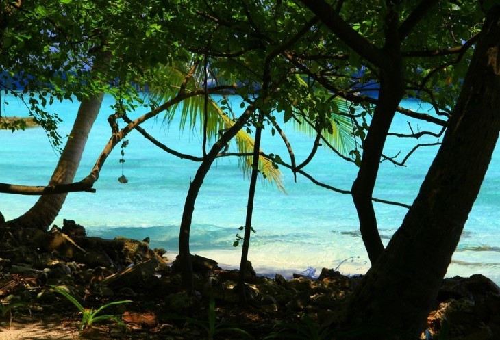 Из тени джунглей бара океан кажется просто нереально ярким.