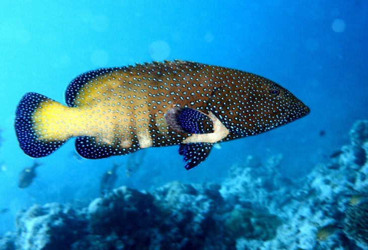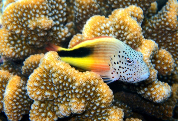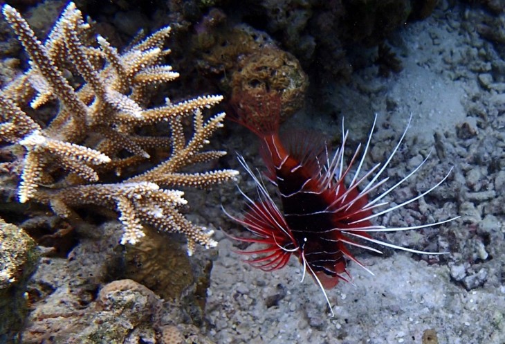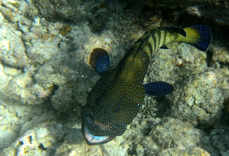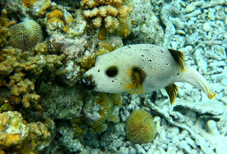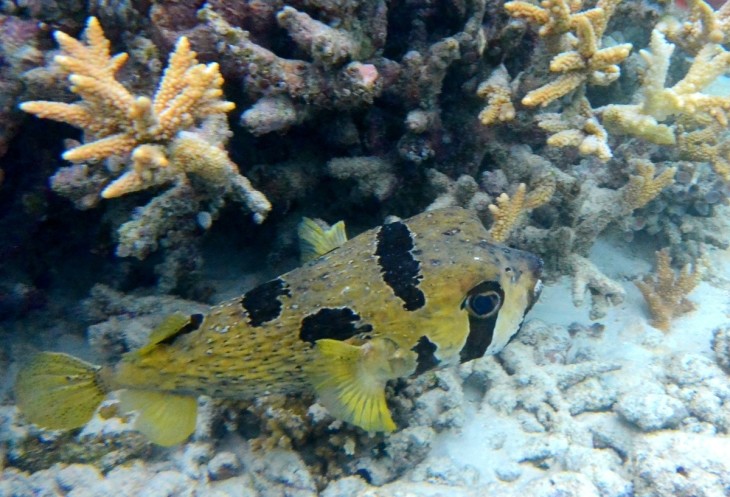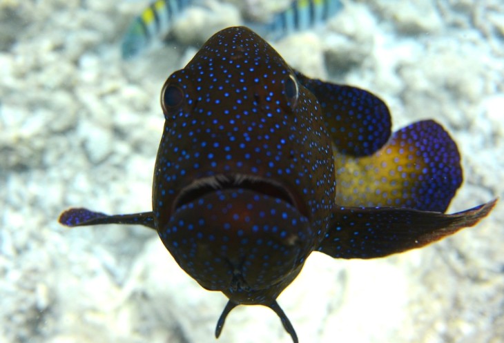 Рыба-еж из под камня подмигнула синим глазом и предложила погладить.