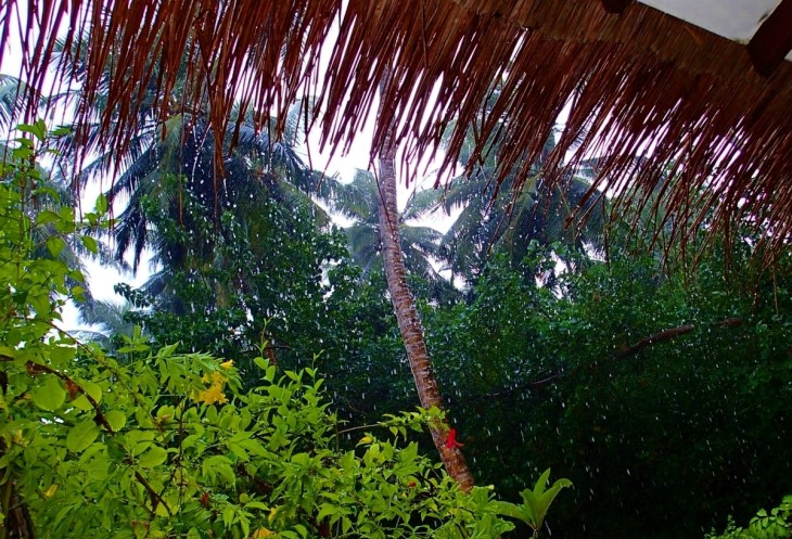 И как-то грянул дождь! Он шел сутки, завалив дорожки сломанными деревьями, ветвями деревьев и кокосами.