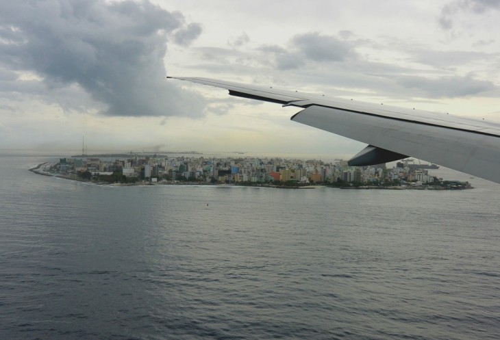 Потом показалась столица островов Мале, а затем и аэропорт (полоска суши средь океана на соседнем со столицей острове).