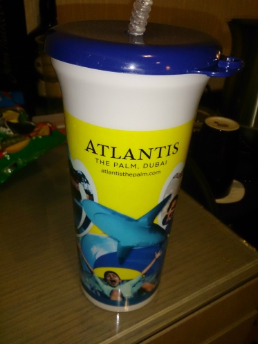 Долго решали где бы нам покушать, прогулялись по улице, проходящей вдоль нашего отеля и открыли для себя очень приличную кафешку. Ждать пришлось правда долго, но оно стоило того. Официант , каждый раз принося новое блюдо, следил за нашей реакцией…уж больно ему хотелось угодить. Ужин превзошел все наши ожидания. И вот когда мы почувствовали себя «колобками», нам принесли чек… 125 дирх! На четверых! Мы заказывали и первое , и второе и десерт. И все было очень вкусным! Прекрасное завершение нашего дня! Кстати, стаканчик «Атлантис» оказался нашей находкой. Наливали туда все что хотели и спокойно попивали у бассейна при нашем отеле.