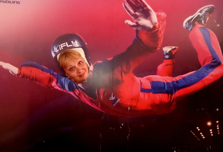 У детей получалось лучше и мне кажется, они были в полном восторге. А вот второй заход в аэротрубу был уже не учебным. Инструктор подхватывала каждого и летала вверх-вниз…вверх-вниз, кого-то даже крутила наверху. Муж сказал, что это самый лучший аттракцион! Он был в восторге…а я стояла и жалела, что не решилась! До сих пор жалею, вспоминая его восторженный взгляд! Я полетала только так…