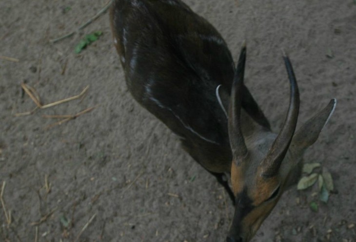 Агрессивная антилопа, пытающаяся боднуть каждого посетителя через рабицу.