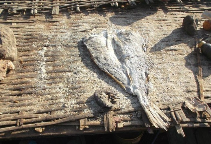 Вяленая рыба бывает очень разной, от анчоусов до монстров. Тушка на фото даже без головы - почти метровой длины. Странно, что при обилии соли и жестком африканском солнце почти вся вяленая рыба непременно воняет тухлятиной. И покупается при этом активно. Видимо, местная специфика ферментации))