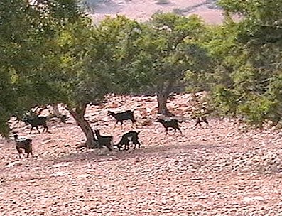 Из флоры интерес представляет Аргана, плоды которой так резво кушают козы, это наркотик, который заставляет из прыгать по кустам.