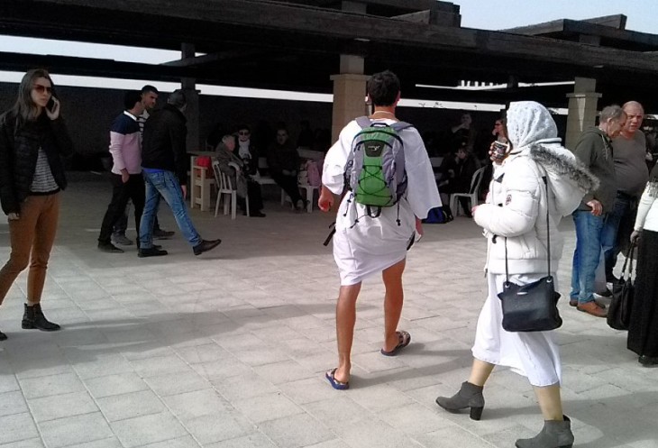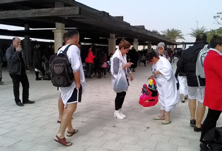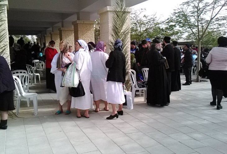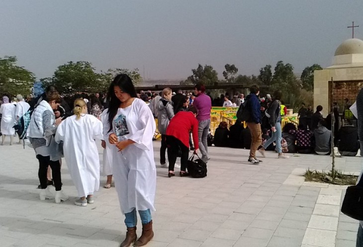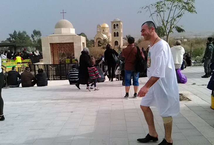 Побывать в таком месте и в такой день – огромное счастье, и я с радостным сердцем отправилась на истинное место Крещения. Автобус был полностью заполнен паломниками (в такой день нас простыми туристами не назовёшь). По дороге в Каср эль Яхуд многие паломники купили у гида специальные рубахи для совершения омовения в водах реки Иордан — и для себя лично, и в подарок близким. У некоторых рубахи были куплены заранее.