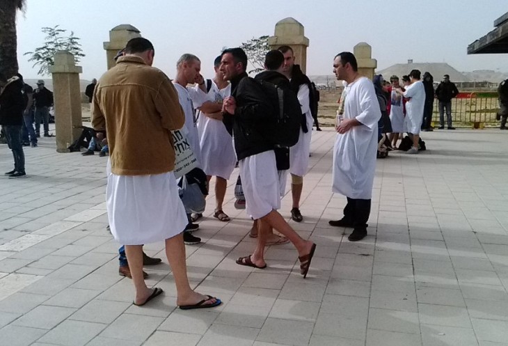 Перед омовением паломники имели возможность надеть специальные белые рубахи в раздевалках, расположенных на территории Каср эль Яхуд. Организаторы, зная о большом количестве людей на празднике, установили ещё и дополнительный шатёр для переодевания. Также были привезены биотуалеты и организована продажа воды. Одни покупали питьевую вод в бутылках, другие пили бесплатно из установки с питьевой водой, расположенной рядом с сувенирным магазином. Пить в пустыне хочется постоянно — и зимой, и летом!