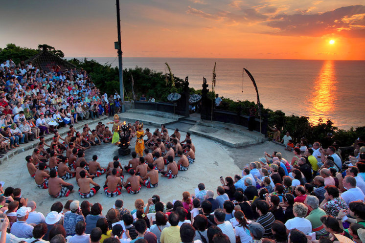 Около шести часов вечера балийцы исполняют на пляже кечак - традиционный танец с огнем. Если приедете пораньше, около 4-5 часов вечера, успеете посмотреть и самый южный храм Бали Улувату, построенный на высокой скале прямо над морем.