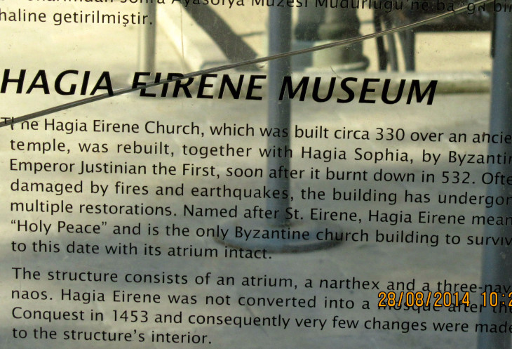 Был в августе - сентябре 2014 года в Стамбуле, в районе Султанахмет, во время посещения Дворца Топкапы, увидел стоящую на территории Дворца церковь Святой Ирины,