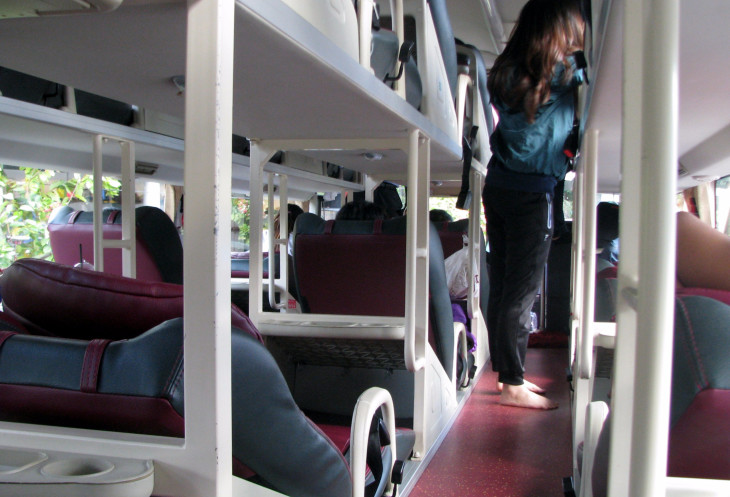Единственно, что может служить ограничением для полноценного отдыха в слип-басе, это рост пассажира, т.к. длина наклонного ложа, предназначенного для сна, ориентирована на средний рост жителей юго-восточной Азии. А они, как правило, не отличаются высоким ростом. Для меня с моим ростом это не послужило препятствием в обеих поездках – из Хо Ши Мина в Муй Не и обратно.