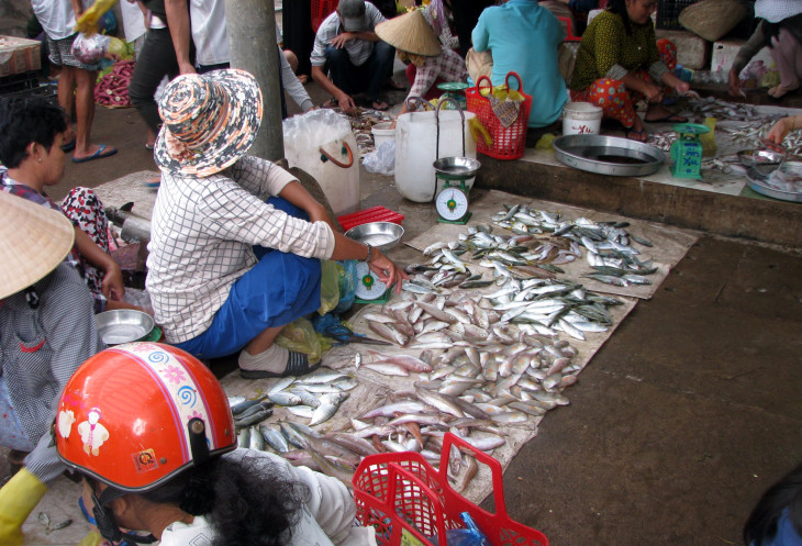 Так же дважды я посещал и большой рынок Муй Не - Ham Tien, предназначенный преимущественно для местных жителей. Вполне объяснимо, что бОльшую часть рынка занимала торговля морепродуктами.