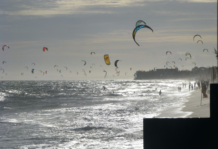 Просто и понятно. В мою новогоднюю поездку ветер во второй половине дня всегда был достаточно сильный и устойчивый. И я подолгу любовался парящими в небе подобно чайкам кайтами.
