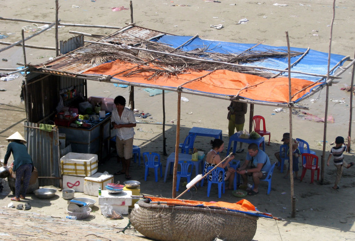 Под небольшим навесом расположились несколько столиков, на которых непривередливым туристам, закрывающим глаза на некоторые признаки антисанитарии, предлагали свежайшие морепродукты. Что называется, «из первых рыбацких рук», только что не из сетей. При этом цена, по отзывам тех, кто там побывал, значительно ниже, чем в ресторанах отельной зоны.