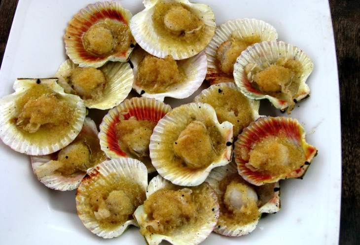 На обнажившейся литорали лежало очень много ракушек, преимущественно от гребешков. Гребешки такого же размера (с содержимым) подавали в качестве блюда в одном из ресторанов Бо Ке, куда мы однажды отправились пообедать.