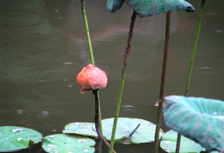 Обеденная процедура была поставлена на поток. И, хотя нас никто не торопил, прибывающие группы туристов ясно давали понять, что их надо усаживать за свободные столы. Я воспользовался небольшой паузой до посадки в катер и сфотографировал бутон розового лотоса, росшего в небольшом бассейне.