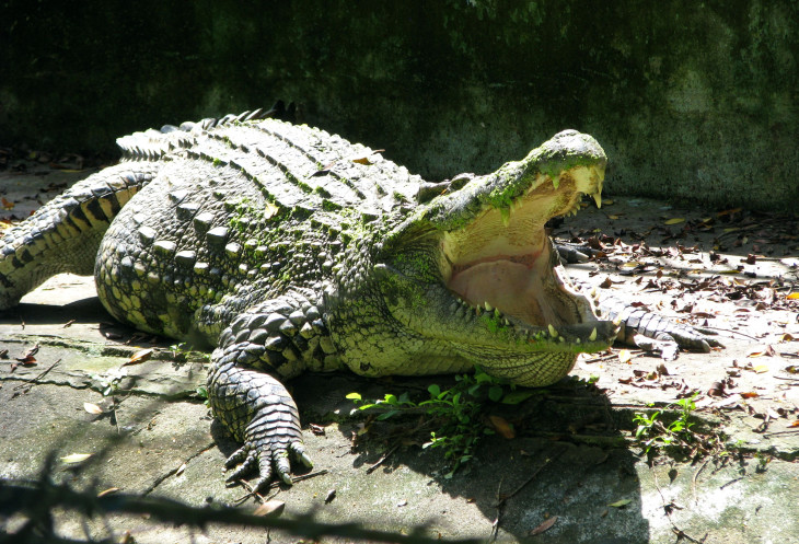 По пути в музей мы полюбовались и покормили бананами обезьянку, грустно сидящую на дереве, привязанную прочной цепью. А вот другому примату дали меньшую свободу передвижений – он был помещён в клетку, но внутри неё перемещался без помех. И также без помех дотягивался до корма, предлагаемого туристами. Заодно мимоходом мы успели посмотреть на варанов, пригревшихся на солнце и широко разинувшем пасть крокодилом.