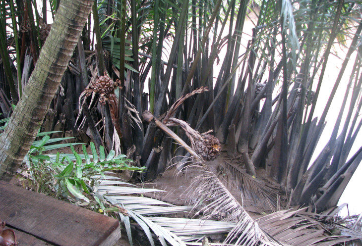 Зато по пути к фабрике кондитерских изделий из кокосовых орехов успел полюбоваться и сфотографировать экзотический плод водного кокоса. Как пояснил Кьен, во время отлива водные орехи оказываются на поверхности, а остальное время скрыты водой.