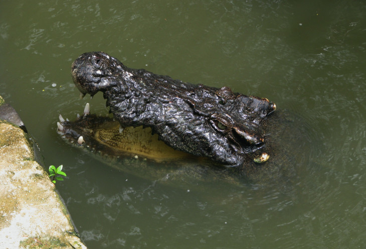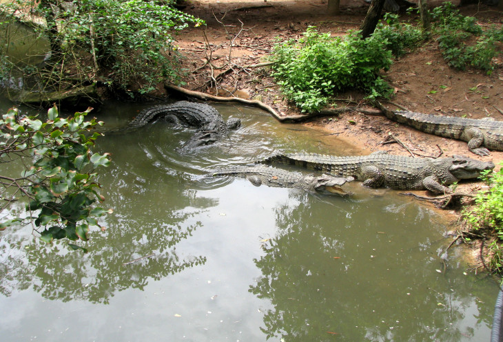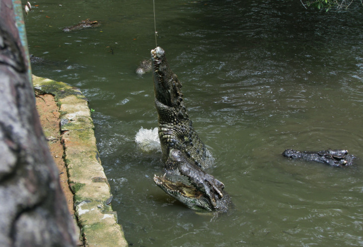 Первым этапом развлечения для нас служит «крокодилокормление» на крокодиловой ферме. В большом водоёме неподвижно валяются «брёвна крокодилов».