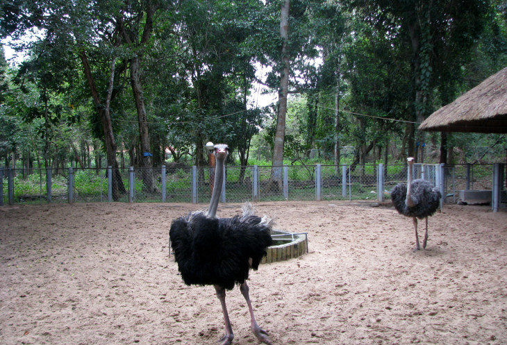 Здесь очередное шоу с участием обеих сторон – люди радуются, как дети, когда удаётся привлечь внимание страуса пучком зелени. А птицы рады внеплановому кормлению. Я же, зная, что нас повезут в ресторан, где будут подавать жаркое из страусятины, вспоминаю классику советской кинокомедии. «Птичку жалко», приходит на ум знаменитая фраза Шурика из этого фильма. Поэтому в ресторане, куда мы попали по дороге домой, я выбираю тушёного крокодила, вот его уж мне совершенно точно не жалко. По вкусу крокодиловое мясо очень похоже на куриное, вот только цветом потемнее.