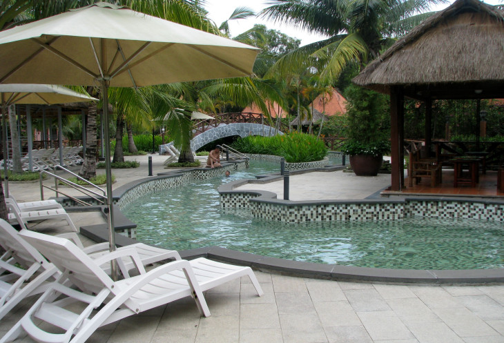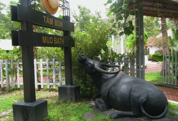 Комплекс Бин Чау с термальными ваннами и крокодиловой фермой расположен неподалёку от горы Та Ку. Сначала Иван беседует с отдыхающими в гамаках вьетнамцами, выясняя у них неведомые нам подробности. Затем направляется к кассе, где оформляет вход на эту громадную территорию всей группе. Судя по надписи на таблице с ценами за вход, здесь же расположены четырёхзвёздочные отели. Они не про нас, по слухам в инете, это место элитного отдыха для более состоятельных европейцев. «А и не очень-то хотелось», думаю я, мне по душе отдых в местах, где рядом море.